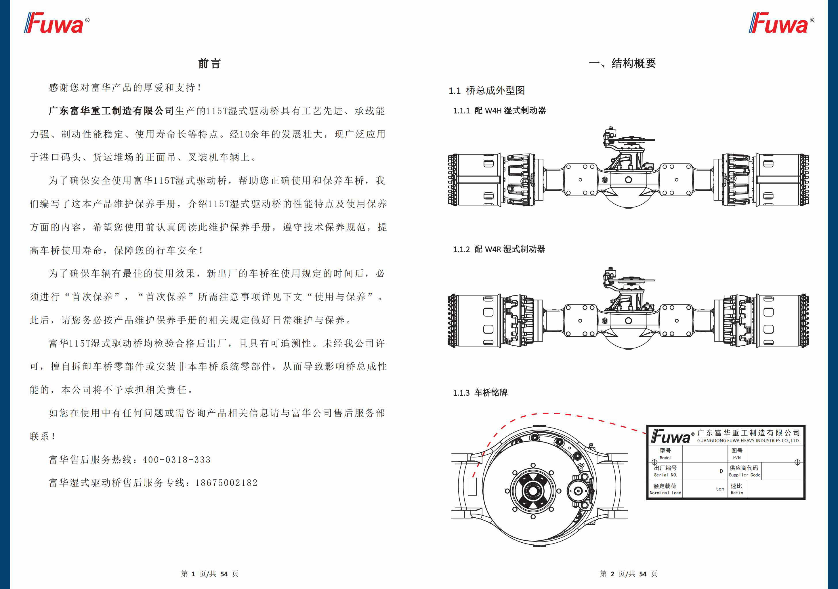 (正面吊)XWF-510 115噸濕式驅(qū)動橋總成產(chǎn)品維護(hù)保養(yǎng)手冊