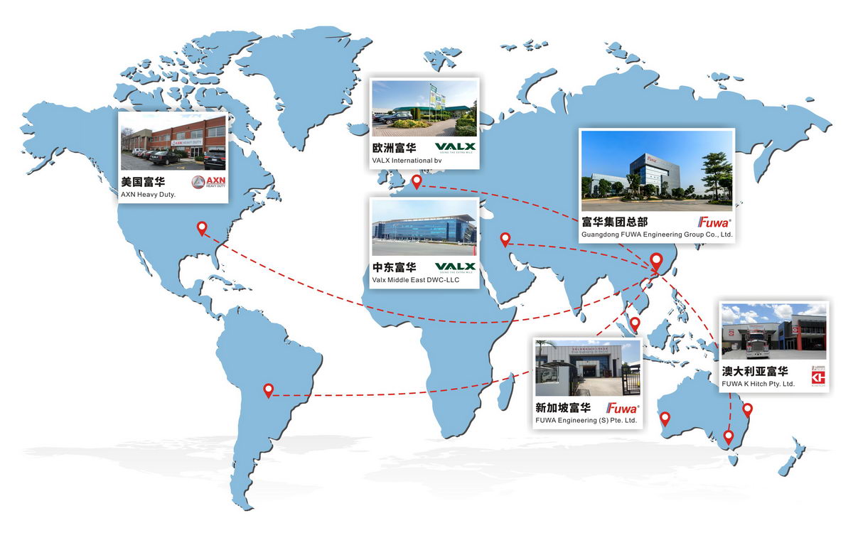 Guangdong FUWA Engineering Group CO., LTD. was founded in 1997. Now it is the leading manufacturer of the commercial vehicle (truck, trailer and engineering vehicle ) axles and chassis components of the world. As a transnational company, the group is operating five major brands such as FUWA (China and Asia), VALX(Europe),AXN(North America), K-Hitch(Australia) and AMPRO(South America). The group covers a total area of more than 2.5 million square meters, including 11 manufacturingplants, 2 logistics ports, 4 overseas companies and 1 Sino-German joint venturecompany.