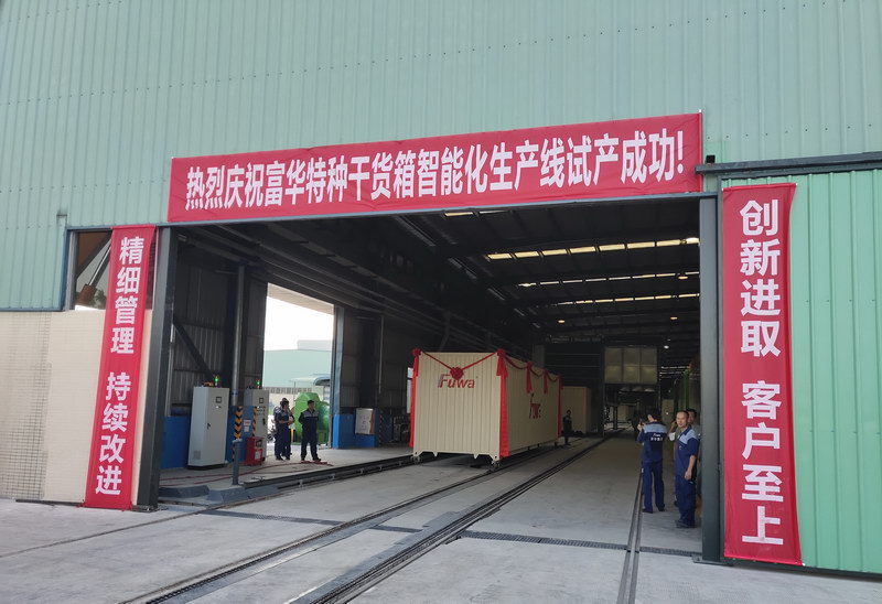 在剛剛過去一年,同樣是在萬物葳蕤的六月,富華標(biāo)準(zhǔn)干貨箱生產(chǎn)線經(jīng)過富華人一百天的日夜奮戰(zhàn),投入運(yùn)行,第一臺(tái)標(biāo)準(zhǔn)箱順利下線。而在今天,這條特種干貨箱生產(chǎn)線又正式投入使用,這標(biāo)志著富華干貨箱已經(jīng)全面實(shí)現(xiàn)了兩線生產(chǎn)、比翼齊飛的夢(mèng)想!自此之后,富華集團(tuán)集裝箱板塊擁有年產(chǎn)10萬TEU標(biāo)準(zhǔn)冷藏箱、年產(chǎn)5萬TEU特種冷藏箱、年產(chǎn)30萬TEU標(biāo)準(zhǔn)干貨箱和年產(chǎn)15萬TEU特種干貨箱四條生產(chǎn)線,真正實(shí)現(xiàn)了集團(tuán)提出的打造“集裝箱超市”經(jīng)營目標(biāo),在滿足客戶貨物裝載基礎(chǔ)需求的同時(shí),也可以滿足其多元化和個(gè)性化的需求。